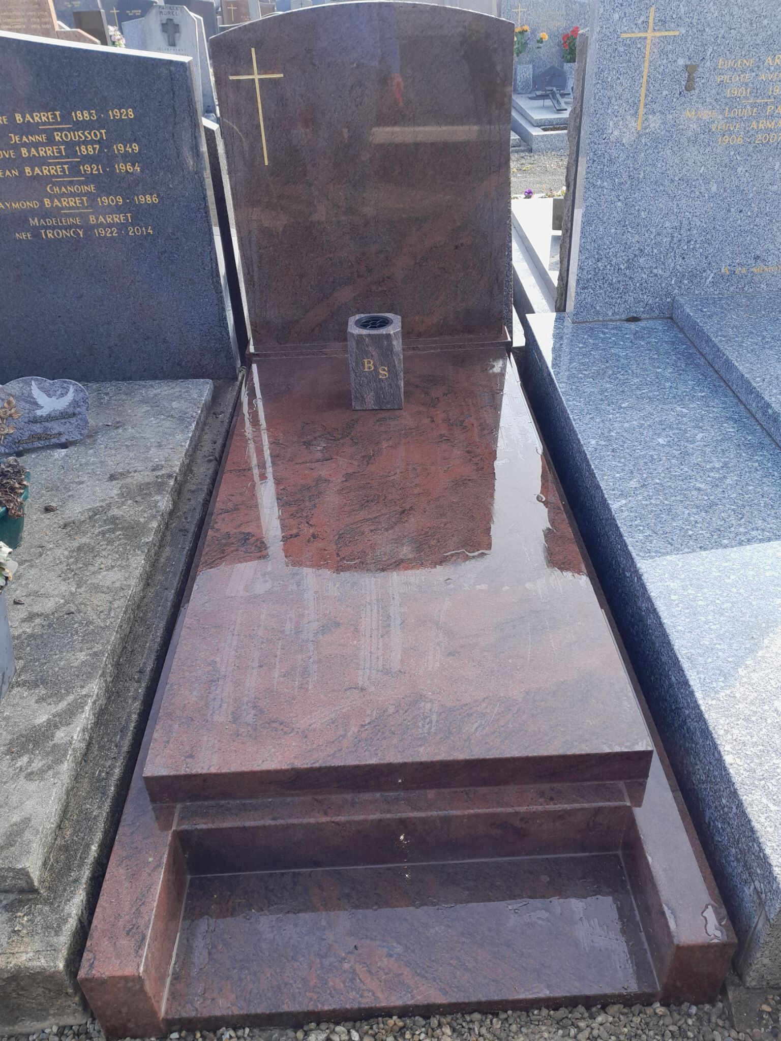 Fabrication et pose d'un monument funéraire en granit Cedro Bahia sur la commune de Tassin-La-Demi-Lune en Mars 2023.